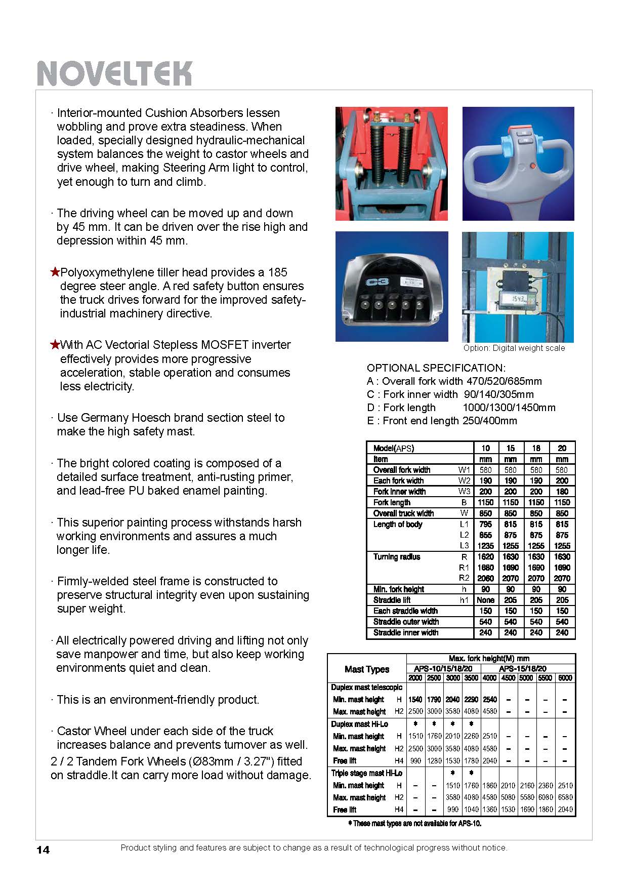 | Fork Lift Height | 2 m – 6 m |