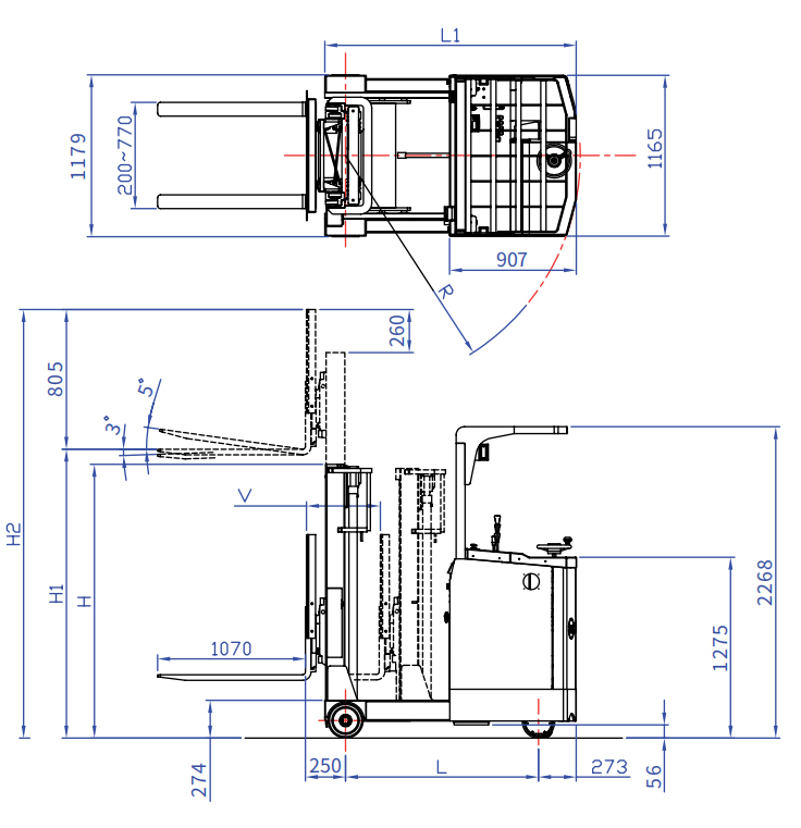 -35°C Cold storage version, side shift...Etc. Are available as options