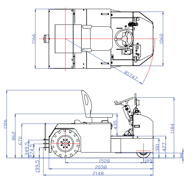 Speed and Maneuverability: Reaches speeds up to 12 km/h when loaded and 14 km/h when empty, optimizing efficiency in high-demand environments.