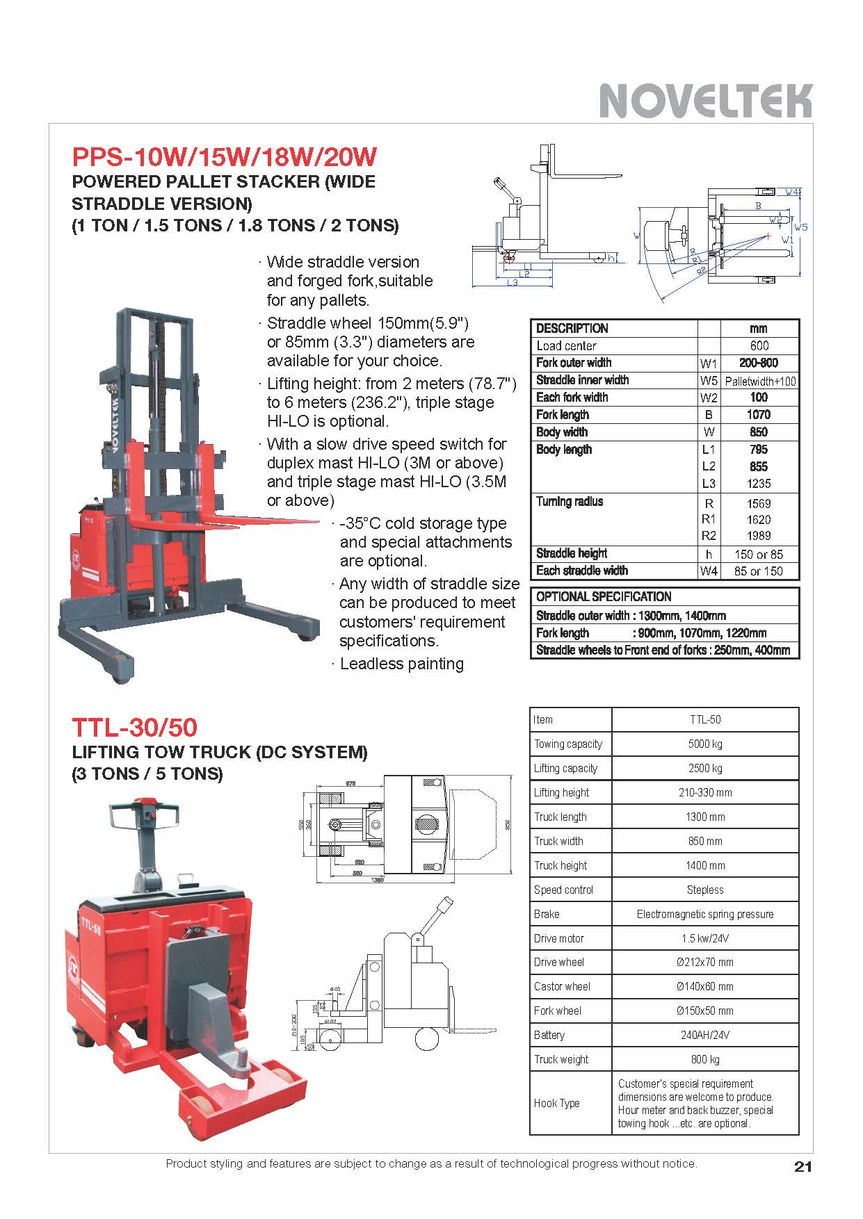| Straddle Lift | 200 mm, handles 2 European open pallets simultaneously |