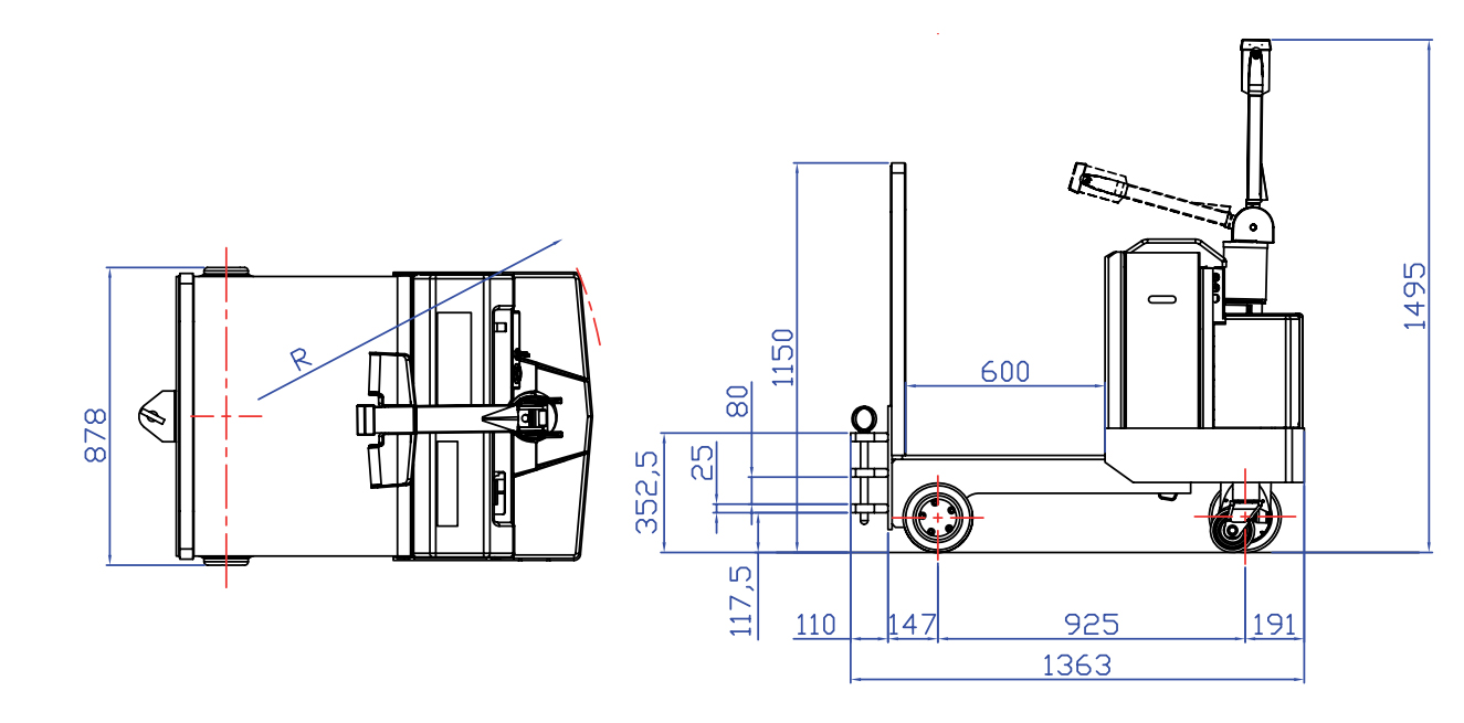 | Roues de chargementArrière) | Ø205x70 mmx2pcs (pneus pleins en polyuréthane) | ||||||