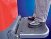 A plataforma dobrável é fornecida com os walkie trucks APT. acelerando velocidade do veículo quando o motorista está na plataforma. A plataforma dobra-se automaticamente assim que o motorista desce e a velocidade será reduzida automaticamente com um interruptor de velocidade lenta sob a plataforma. |